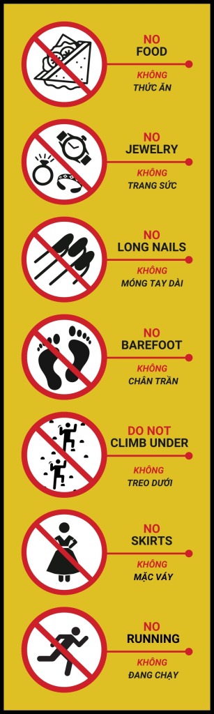 - No food, drinks, or chewing gum inside the climbing area.